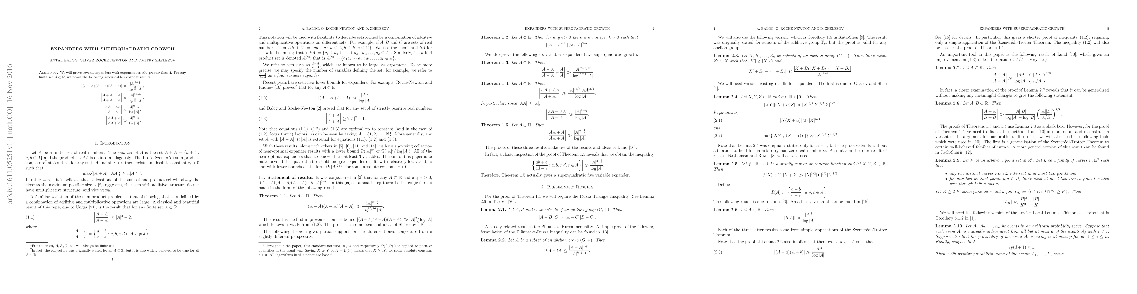 We will prove several expanders with exponent strictly greater than $2$. For any finite set $A \subset \mathbb R$, we prove the following six-variable expander results: \begin{align*} |(A-A)(A-A)(A-A)| &\gg \frac{|A|^{2+\frac{1}{8}}}{\log^{\frac{17}{16}}|A|}, \\ \left|\frac{A+A}{A+A}+\frac{A}{A}\right| &\gg \frac{|A|^{2+\frac{2}{17}}}{\log^{\frac{16}{17}}|A|}, \\ \left|\frac{AA+AA}{A+A}\right| &\gg \frac{|A|^{2+\frac{1}{8}}}{\log |A|}, \\ \left|\frac{AA+A}{AA+A}\right| &\gg \frac{|A|^{2+\frac{1}{8}}}{\log |A|}. \end{align*}