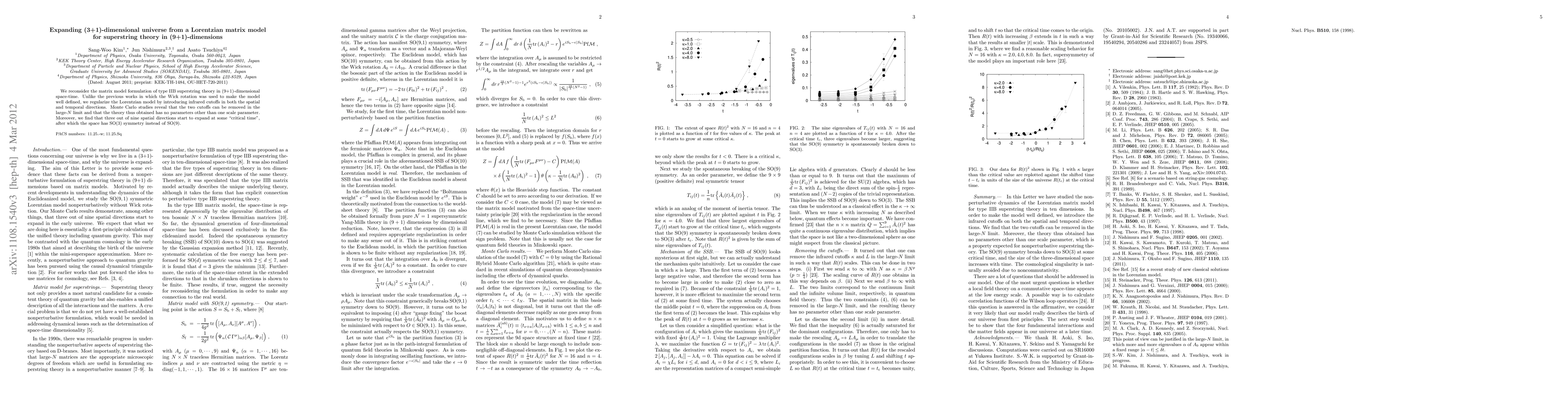 We reconsider the matrix model formulation of type IIB superstring theory in (9+1)-dimensional space-time. Unlike the previous proposal in which the Wick rotation was used to make the model well-defined, we regularize the Lorentzian model by introducing infrared cutoffs in both the spatial and temporal directions. Monte Carlo studies reveal that the two cutoffs can be removed in the large-N limit and that the theory thus obtained has no parameters other than one scale parameter. Moreover, we find that three out of nine spatial directions start to expand at some "critical time", after which the space has SO(3) symmetry instead of SO(9).