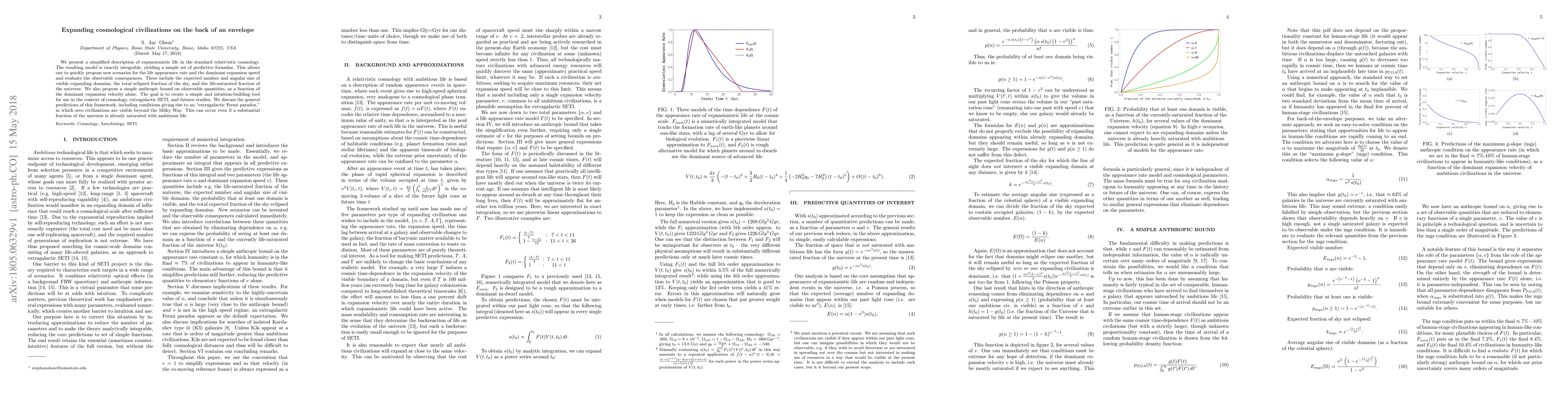 We present a simplified description of expansionistic life in the standard relativistic cosmology. The resulting model is exactly integrable, yielding a simple set of predictive formulas. This allows one to quickly propose new scenarios for the life appearance rate and the dominant expansion speed and evaluate the observable consequences. These include the expected number and angular size of visible expanding domains, the total eclipsed fraction of the sky, and the life-saturated fraction of the universe. We also propose a simple anthropic bound on observable quantities, as a function of the dominant expansion velocity alone. The goal is to create a simple and intuition-building tool for use in the context of cosmology, extragalactic SETI, and futures studies. We discuss the general predictions of this framework, including conditions giving rise to an "extragalactic Fermi paradox," in which zero civilizations are visible beyond the Milky Way. This can occur even if a substantial fraction of the universe is already saturated with ambitious life.