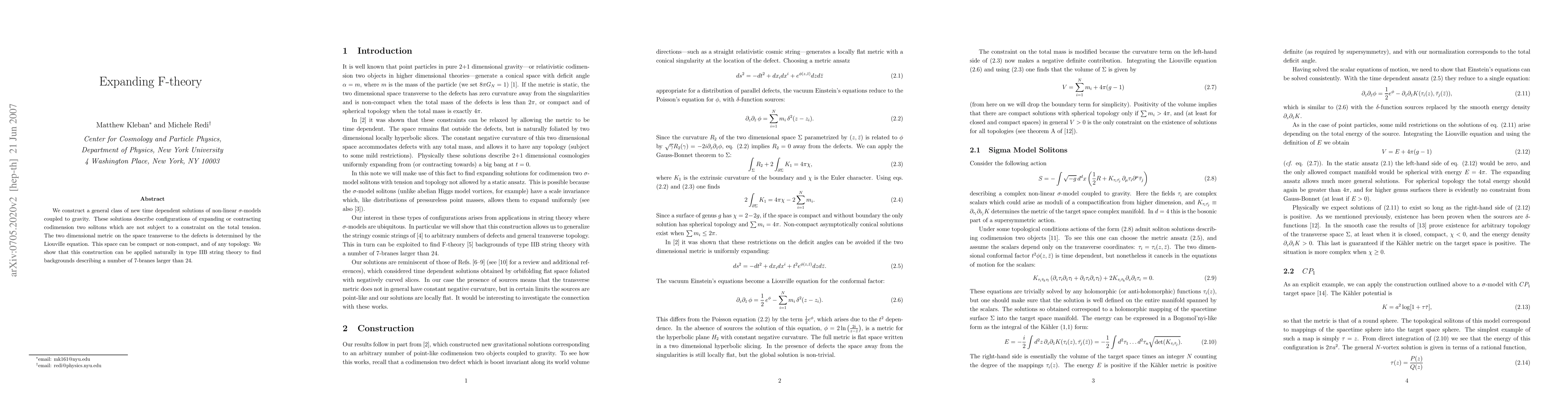 We construct a general class of new time dependent solutions of non-linear sigma models coupled to gravity. These solutions describe configurations of expanding or contracting codimension two solitons which are not subject to a constraint on the total tension. The two dimensional metric on the space transverse to the defects is determined by the Liouville equation. This space can be compact or non-compact, and of any topology. We show that this construction can be applied naturally in type IIB string theory to find backgrounds describing a number of 7-branes larger than 24.