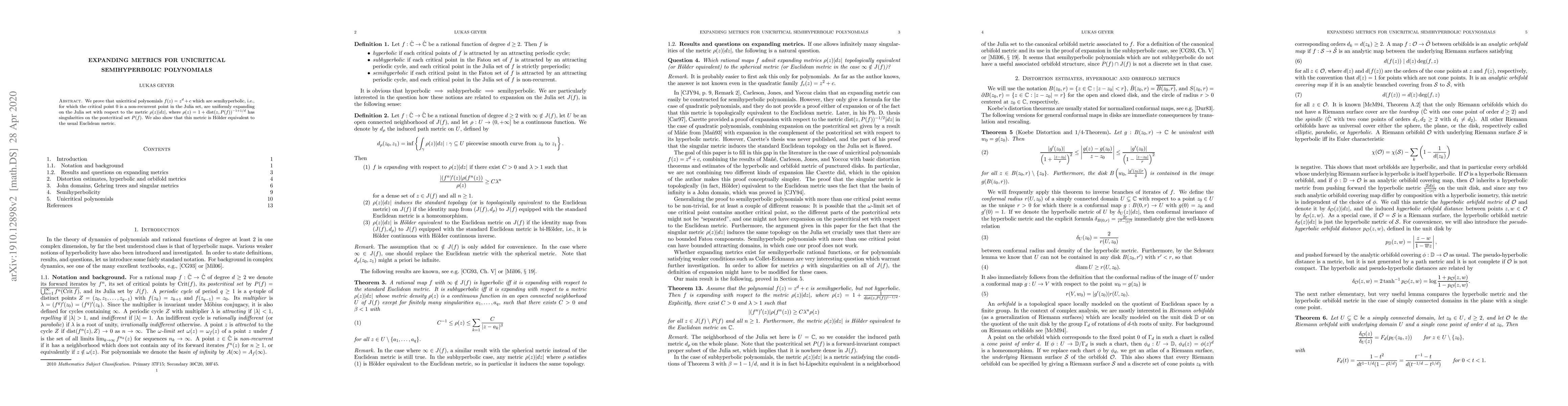 This research proves that certain unicritical polynomials, which are semihyperbolic and have a non-recurrent critical point in their Julia set, are uniformly expanding on this set when measured with a specific metric. This metric is shown to be H"older equivalent to the standard Euclidean metric.