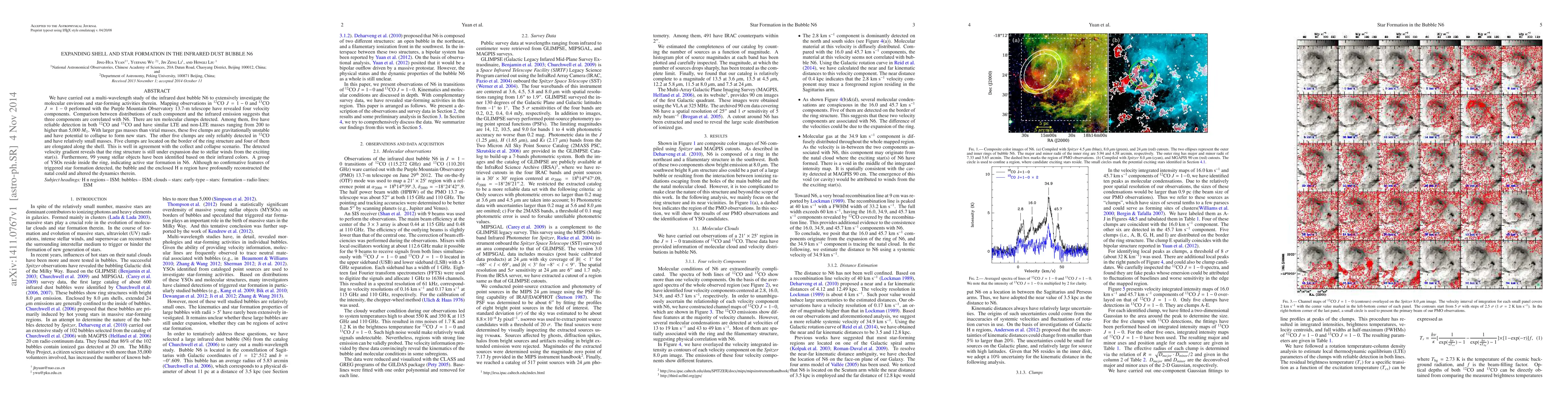 This study investigates the infrared dust bubble N6 using multi-wavelength observations, revealing four velocity components and ten molecular clumps, five of which are gravitationally unstable and likely to form new stars. The ring structure's expansion suggests ongoing stellar activity, while 99 young stellar objects indicate active star formation within the bubble.