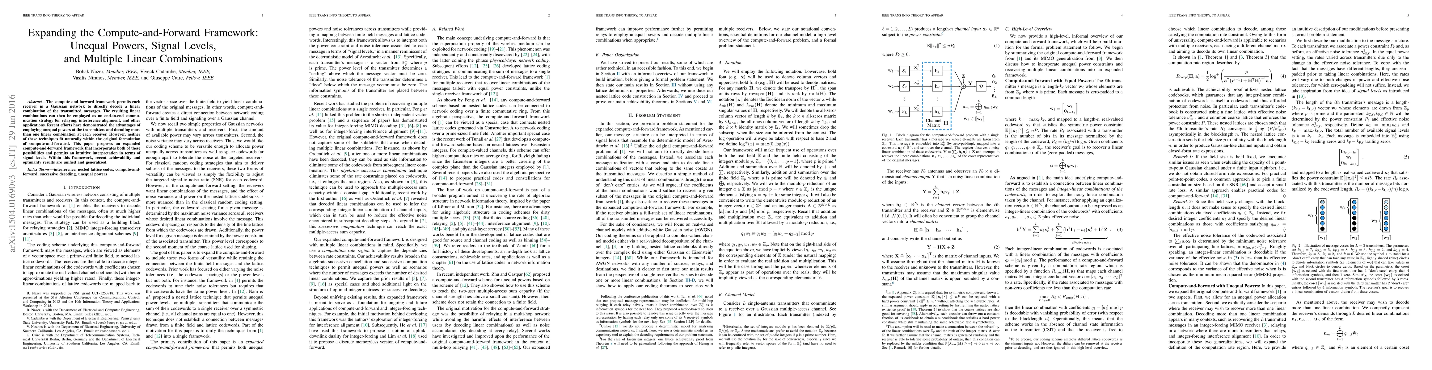 The compute-and-forward framework permits each receiver in a Gaussian network to directly decode a linear combination of the transmitted messages. The resulting linear combinations can then be employed as an end-to-end communication strategy for relaying, interference alignment, and other applications. Recent efforts have demonstrated the advantages of employing unequal powers at the transmitters and decoding more than one linear combination at each receiver. However, neither of these techniques fit naturally within the original formulation of compute-and-forward. This paper proposes an expanded compute-and-forward framework that incorporates both of these possibilities and permits an intuitive interpretation in terms of signal levels. Within this framework, recent achievability and optimality results are unified and generalized.