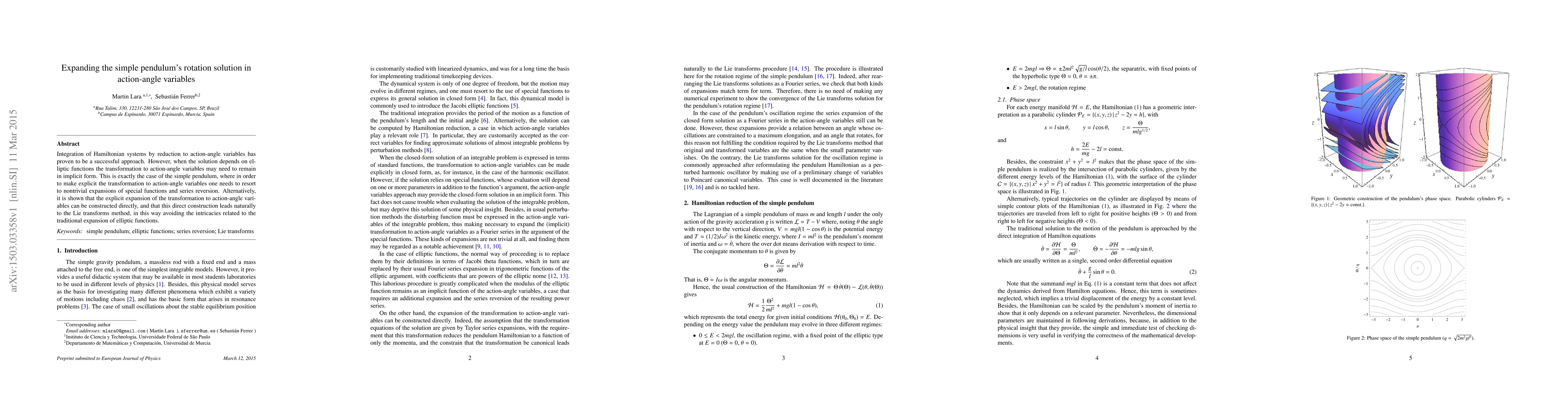 Integration of Hamiltonian systems by reduction to action-angle variables has proven to be a successful approach. However, when the solution depends on elliptic functions the transformation to action-angle variables may need to remain in implicit form. This is exactly the case of the simple pendulum, where in order to make explicit the transformation to action-angle variables one needs to resort to nontrivial expansions of special functions and series reversion. Alternatively, it is shown that the explicit expansion of the transformation to action-angle variables can be constructed directly, and that this direct construction leads naturally to the Lie transforms method, in this way avoiding the intricacies related to the traditional expansion of elliptic functions.