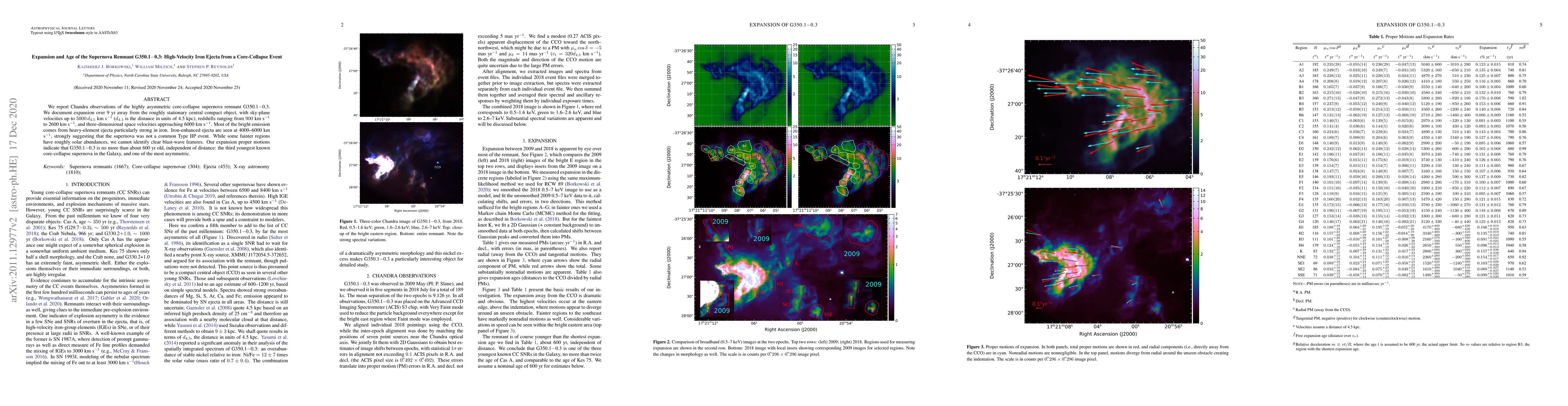 We report Chandra observations of the highly asymmetric core-collapse supernova remnant G350.1-0.3. We document expansion over 9 years away from the roughly stationary central compact object, with sky-plane velocities up to $5000 d_{4.5}$ km s$^{-1}$ ($d_{4.5}$ is the distance in units of 4.5 kpc), redshifts ranging from 900 km s$^{-1}$ to 2600 km s$^{-1}$, and three-dimensional space velocities approaching 6000 km s$^{-1}$. Most of the bright emission comes from heavy-element ejecta particularly strong in iron. Iron-enhanced ejecta are seen at 4000 - 6000 km s$^{-1}$, strongly suggesting that the supernova was not a common Type IIP event. While some fainter regions have roughly solar abundances, we cannot identify clear blast-wave features. Our expansion proper motions indicate that G350.1-0.3 is no more than about 600 years old, independent of distance: the third youngest known core-collapse supernova in the Galaxy, and one of the most asymmetric.