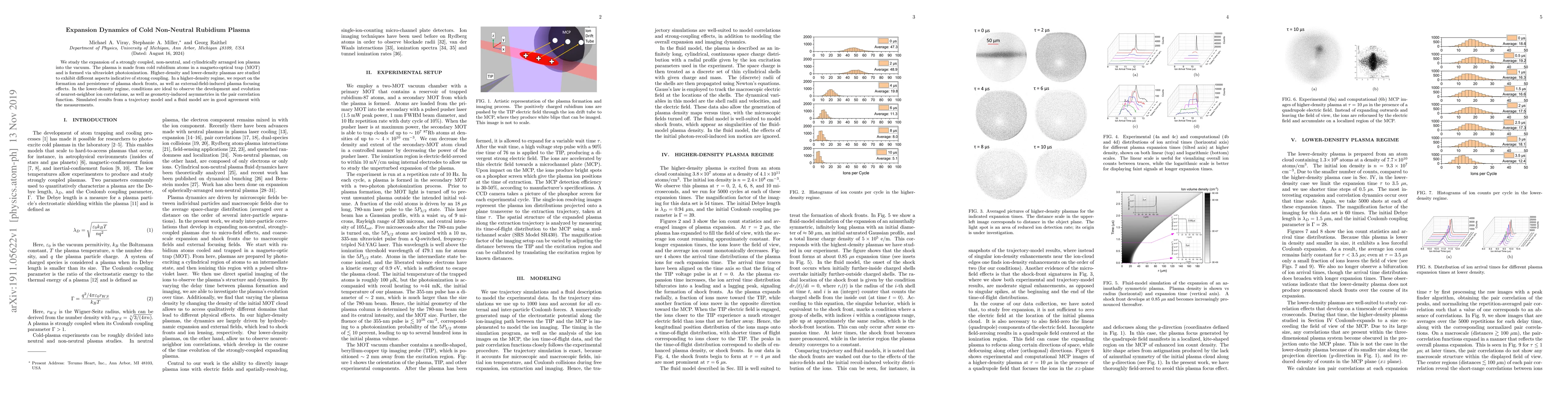 This paper investigates the expansion dynamics of cold, non-neutral plasmas formed from rubidium atoms in a magneto-optical trap, focusing on shock fronts and plasma focusing in higher-density regimes, and ion correlations in lower-density regimes. Simulation results align well with experimental observations.