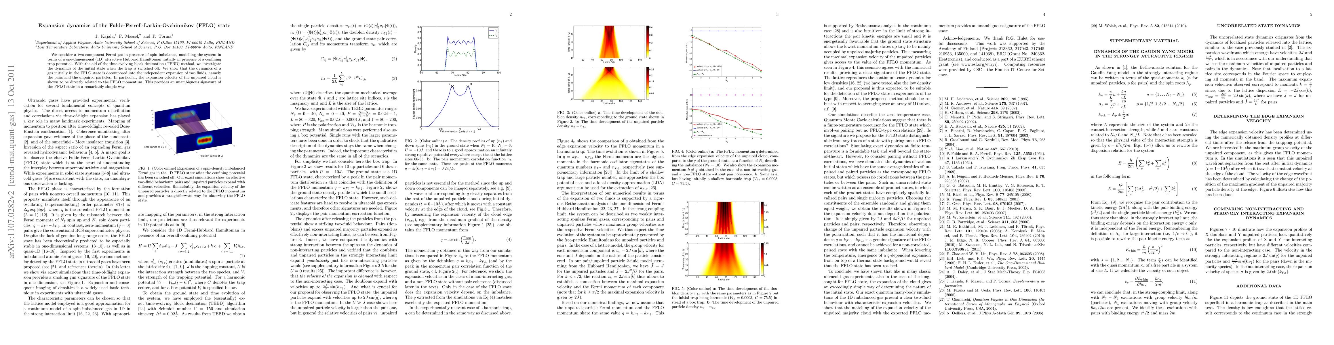 We consider a two-component Fermi gas in the presence of spin imbalance, modeling the system in terms of a one-dimensional attractive Hubbard Hamiltonian initially in the presence of a confining trap potential. With the aid of the time-evolving block decimation method, we investigate the dynamics of the initial state when the trap is switched off. We show that the dynamics of a gas initially in the Fulde-Ferrel-Larkin-Ovchinnikov (FFLO) state is decomposed into the independent expansion of two fluids, namely the paired and the unpaired particles. In particular, the expansion velocity of the unpaired cloud is shown to be directly related to the FFLO momentum. This provides an unambiguous signature of the FFLO state in a remarkably simple way.