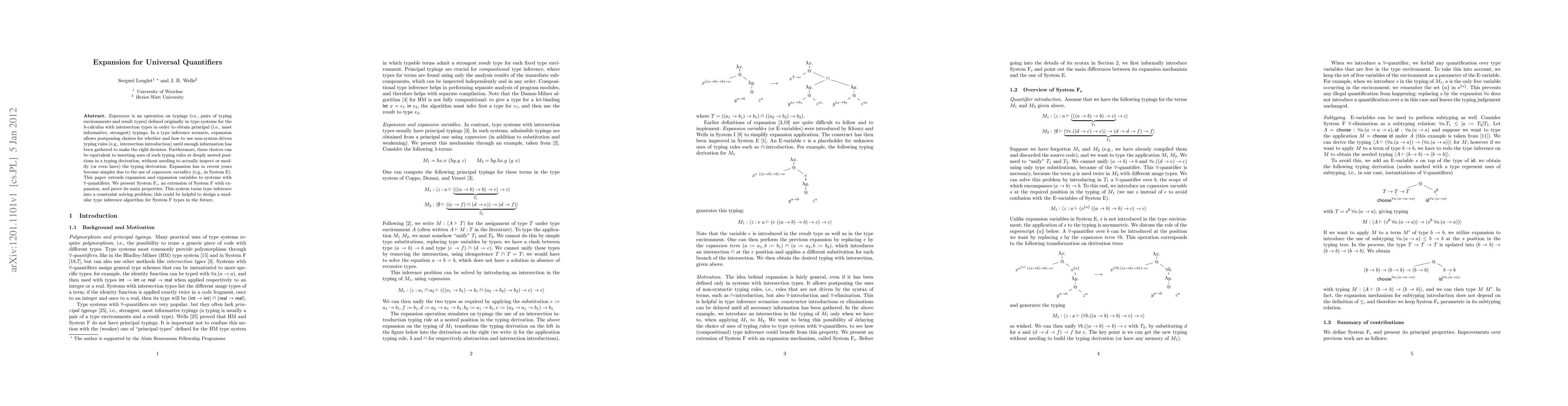 This paper extends expansion to systems with forall-quantifiers, creating System Fs, which turns type inference into a constraint solving problem, enabling modular type inference for System F types.