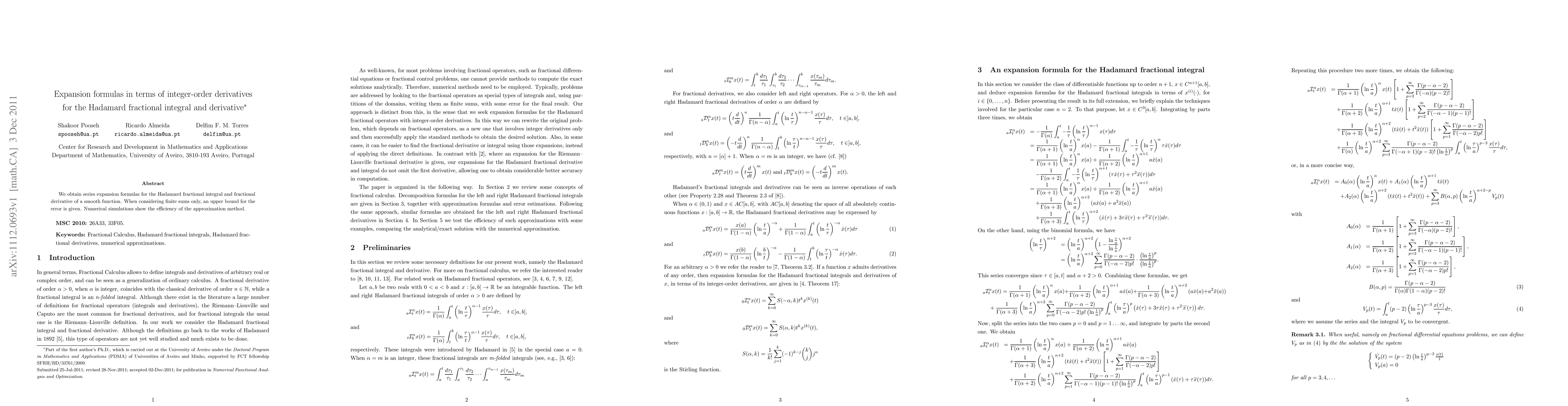Researchers created expansion formulas for approximating the Hadamard fractional integral and derivative of a function, providing an efficient method for numerical simulations.