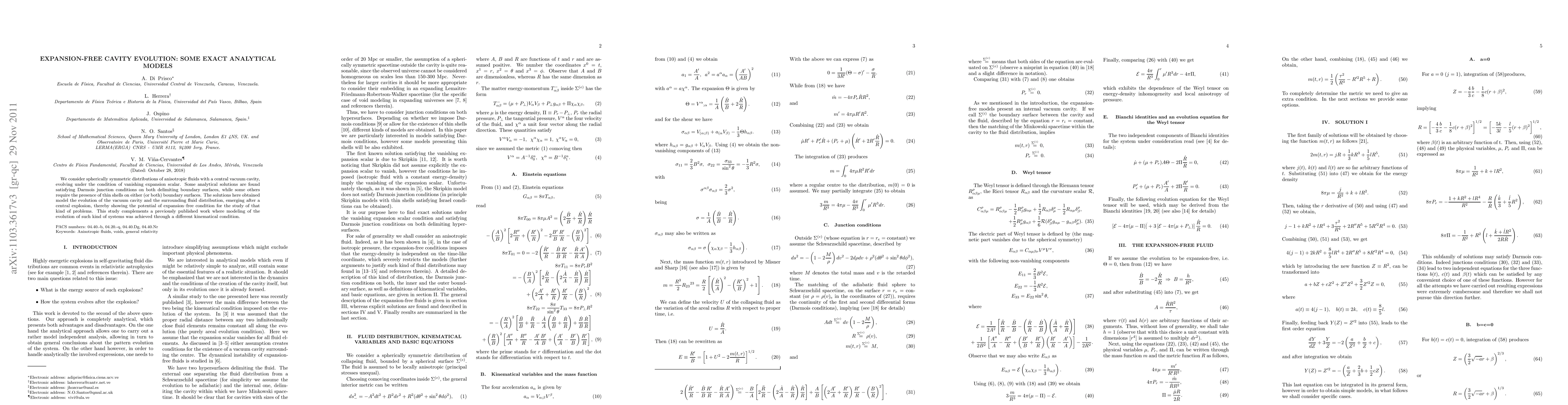 Researchers found exact analytical models for spherically symmetric fluid distributions with a central vacuum cavity, evolving without expansion, and some require thin shells on boundary surfaces.