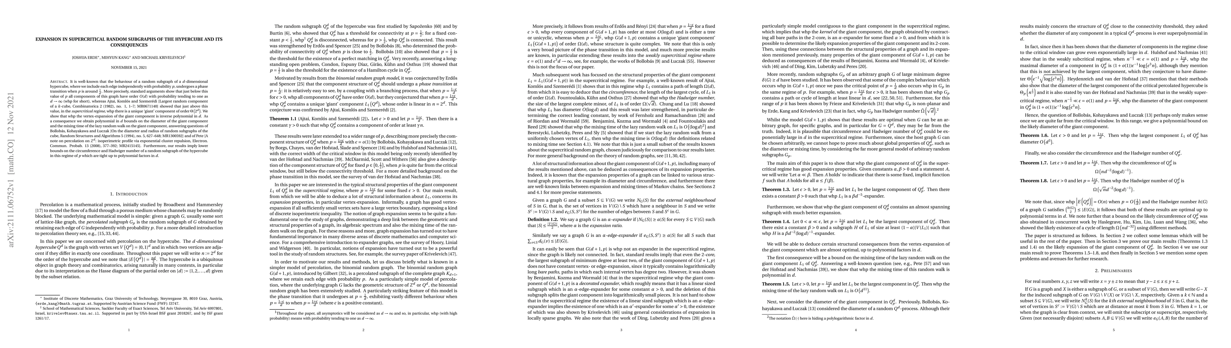 This paper investigates the properties of supercritical random subgraphs of a $d$-dimensional hypercube, demonstrating that the giant component exhibits inverse polynomial vertex-expansion. It also establishes polynomial bounds on the diameter and mixing time of the giant component, addressing prior questions and providing tight bounds on the circumference and Hadwiger number of these subgraphs.
