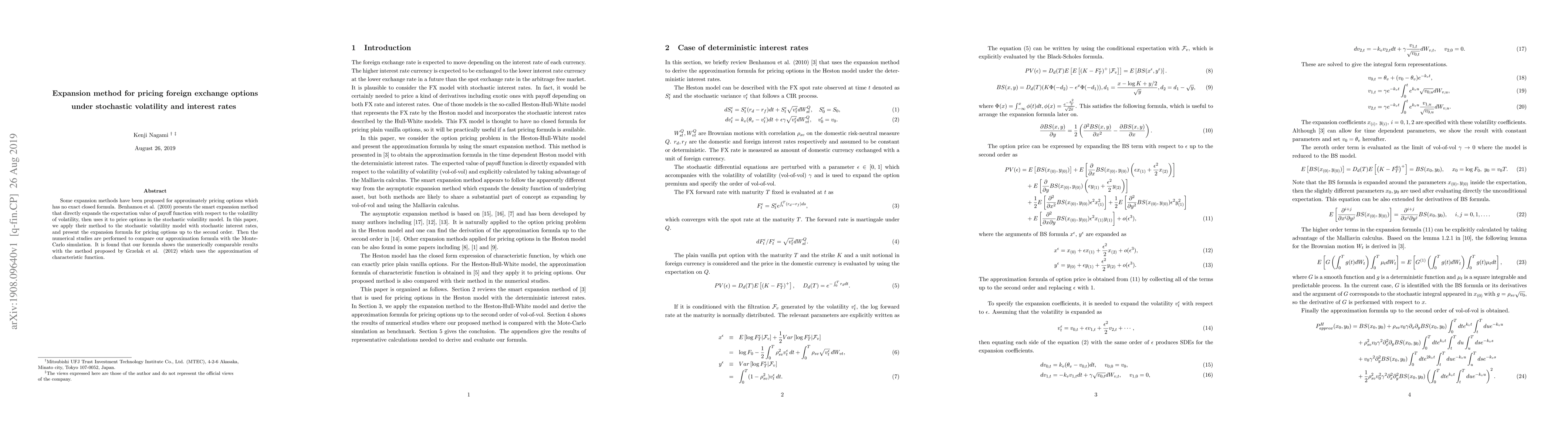 This paper applies the smart expansion method for pricing foreign exchange options under stochastic volatility and interest rates, deriving an expansion formula up to the second order. Numerical studies show comparable results to the Monte-Carlo simulation and another method using characteristic function approximation.