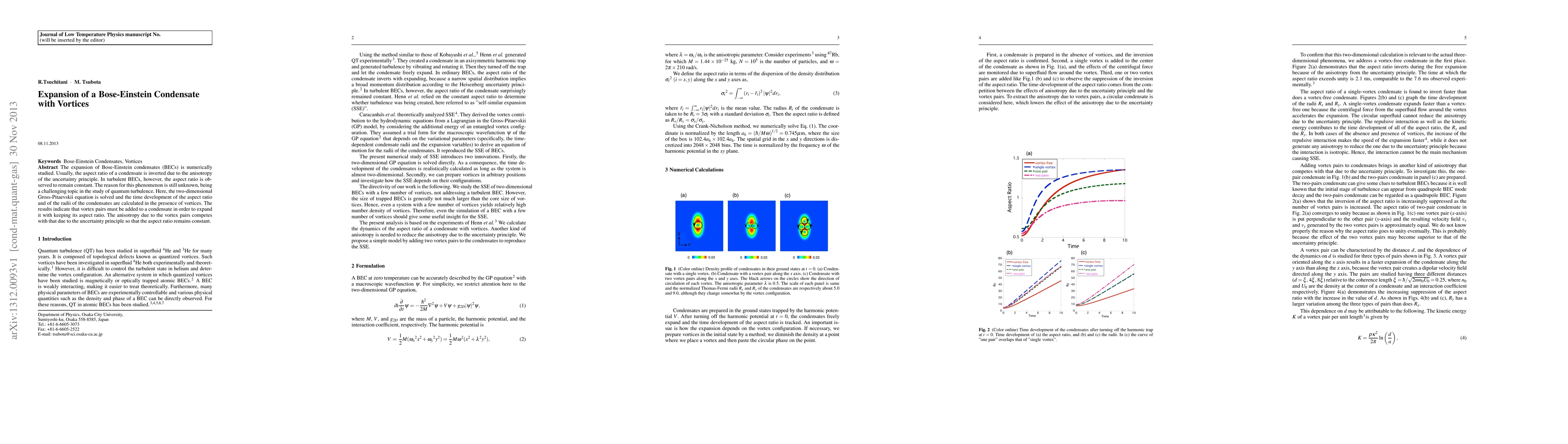 Researchers studied how Bose-Einstein condensates expand with vortices, finding that adding vortex pairs maintains a constant aspect ratio despite the anisotropy of the uncertainty principle.