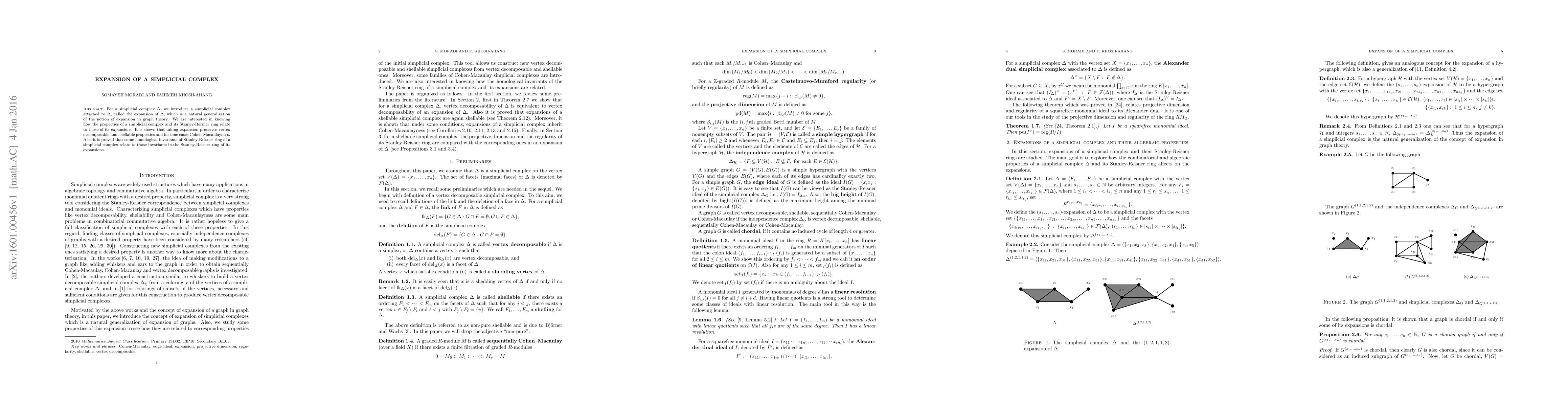 This paper introduces the concept of expanding a simplicial complex, a generalization of graph expansion, and examines how properties like vertex decomposability, shellability, and Cohen-Macaulayness are preserved under this expansion. It also investigates the relationship between homological invariants of the original complex and its expansions.