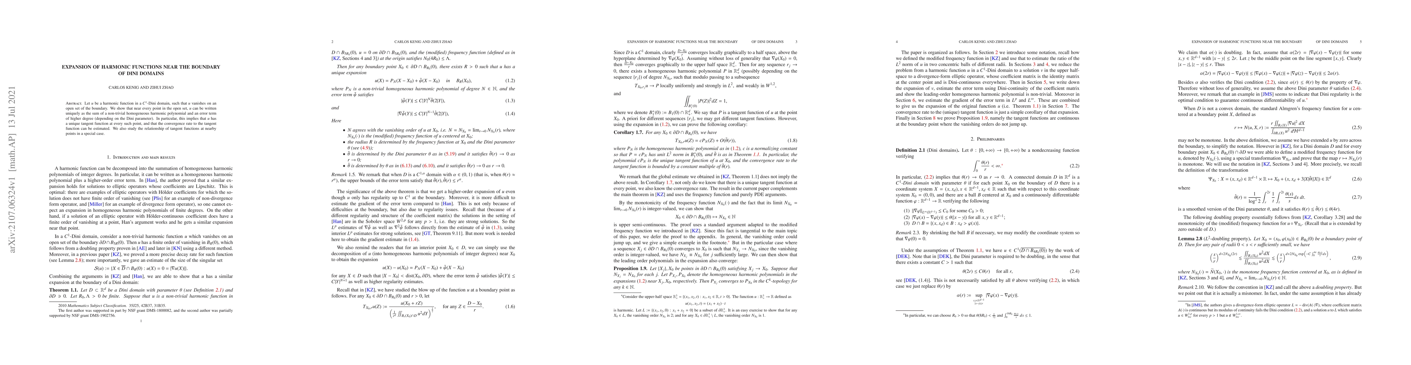 Let $u$ be a harmonic function in a $C^1$-Dini domain, such that $u$ vanishes on an open set of the boundary. We show that near every point in the open set, $u$ can be written uniquely as the sum of a non-trivial homogeneous harmonic polynomial and an error term of higher degree (depending on the Dini parameter). In particular, this implies that $u$ has a unique tangent function at every such point, and that the convergence rate to the tangent function can be estimated. We also study the relationship of tangent functions at nearby points in a special case.