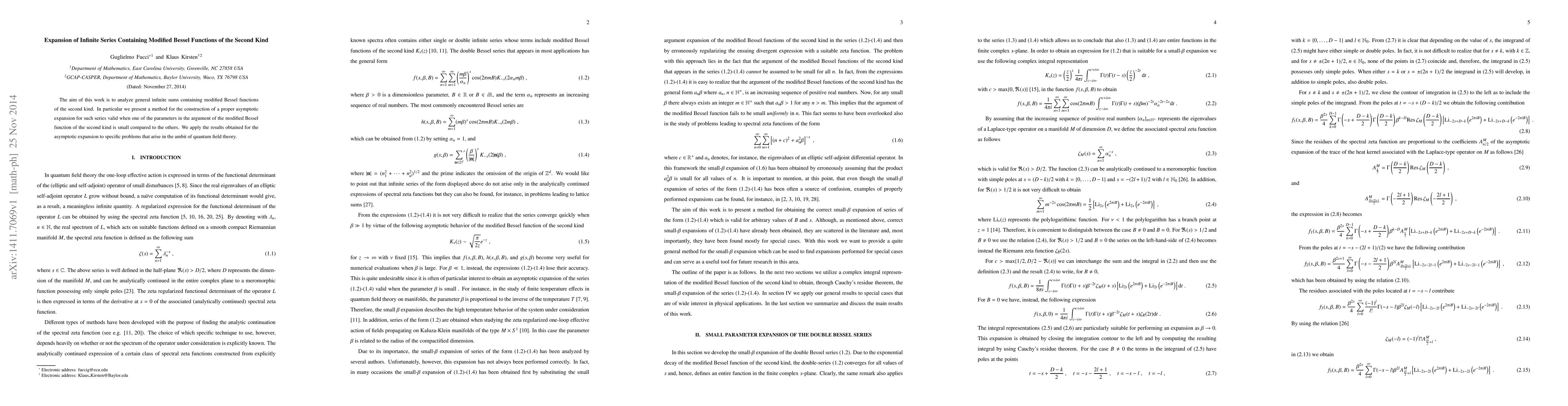 This paper presents a method for constructing an asymptotic expansion for infinite series involving modified Bessel functions of the second kind, especially when one parameter is small. The findings are applied to address specific quantum field theory problems.
