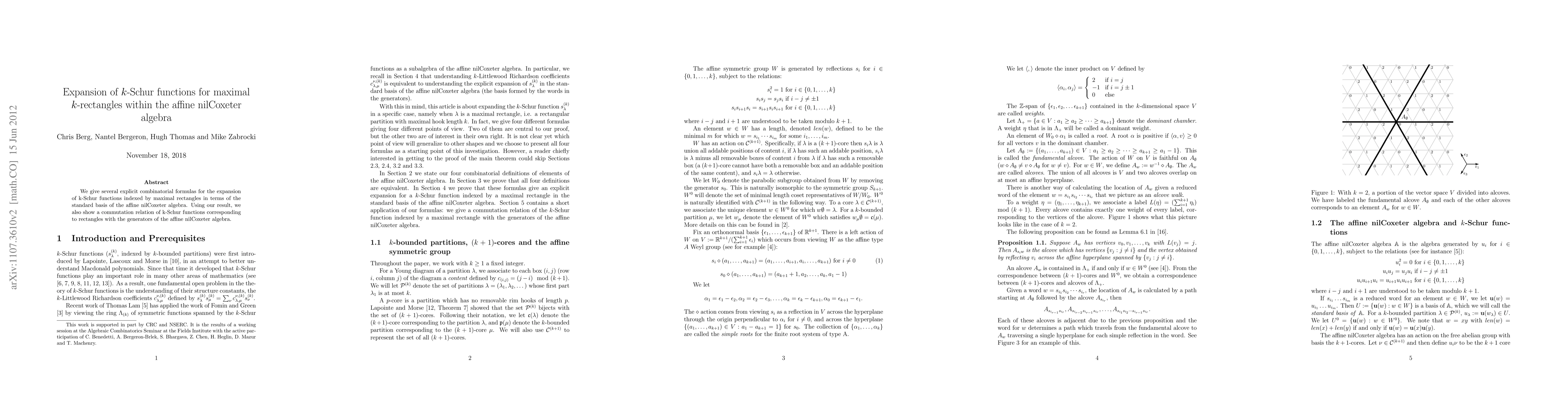 This paper provides combinatorial formulas for the expansion of $k$-Schur functions indexed by maximal rectangles in terms of the standard basis of the affine nilCoxeter algebra and demonstrates a commutation relation between these functions and the algebra's generators.