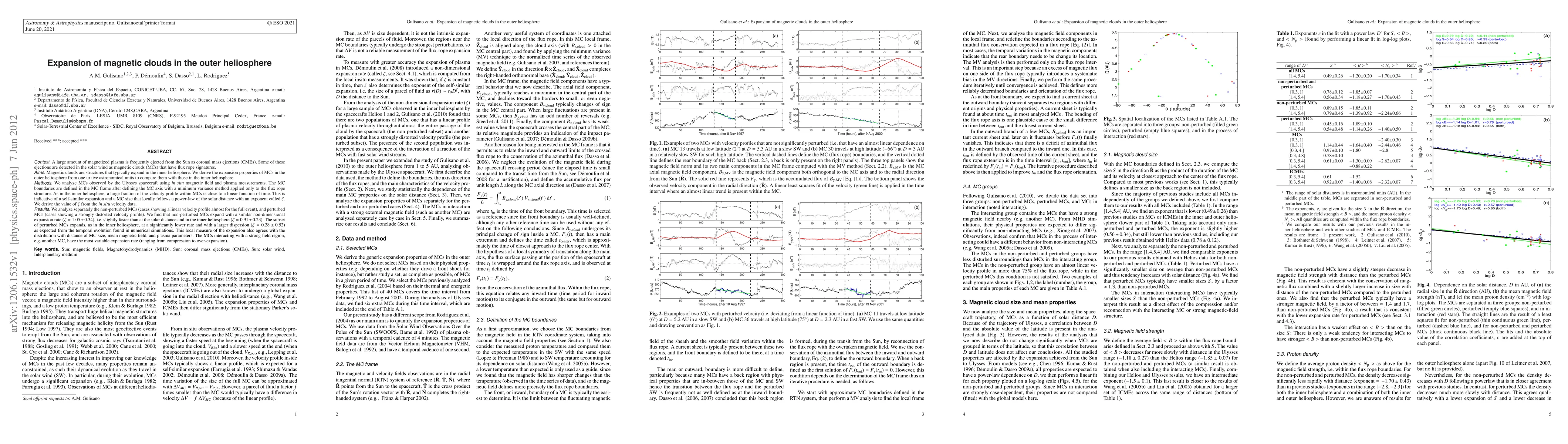Researchers studied magnetic clouds in the outer heliosphere, finding they expand at a rate similar to inner heliosphere values for non-perturbed clouds, but significantly slower and more variable for perturbed clouds.