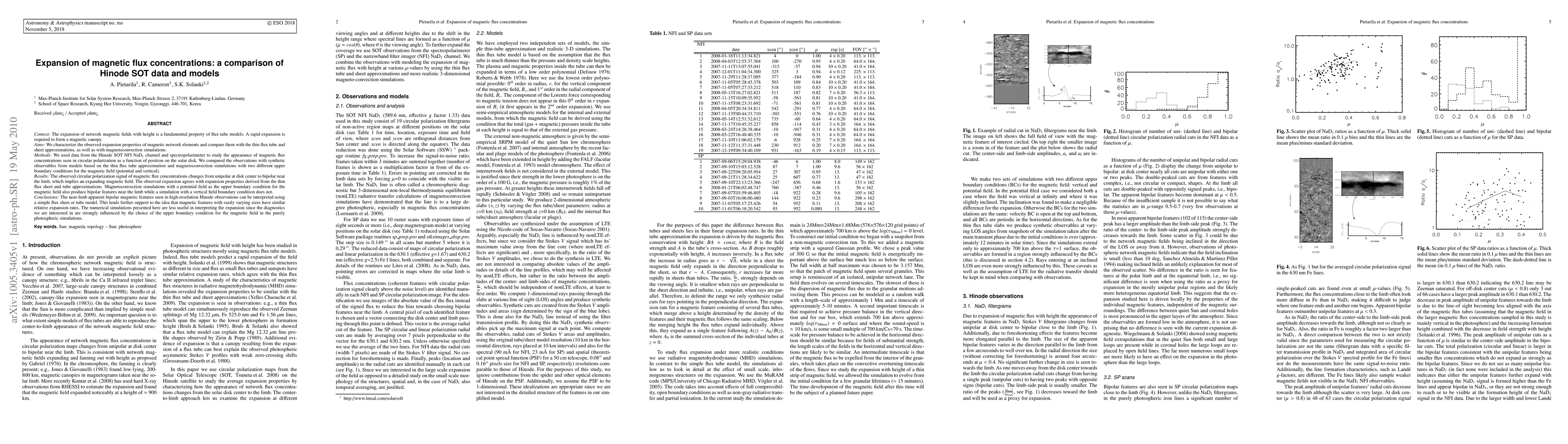 This study compares the expansion of magnetic flux concentrations observed by Hinode SOT data with theoretical models and magnetoconvection simulations. The results show that the observed expansion aligns with thin flux tube and sheet models, while simulations with different upper boundary conditions for the magnetic field yield varying results.