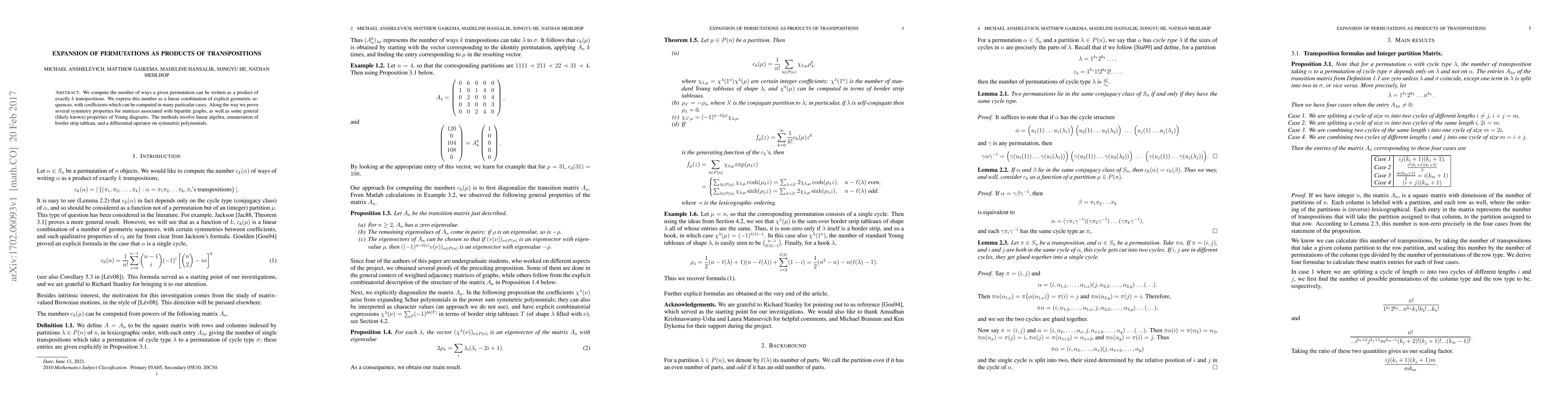 Researchers developed a method to calculate the number of ways a permutation can be expressed as a product of exactly k transpositions, using linear algebra and symmetric polynomials, with potential implications for combinatorial problems.