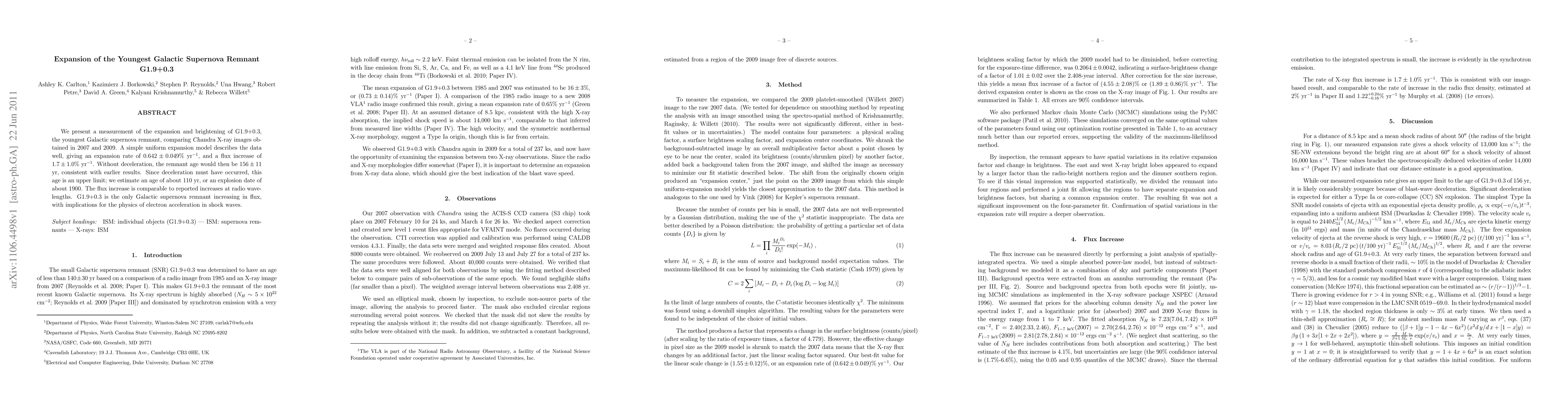 The research utilized Chandra X-ray images from 2007 and 2009 to measure the expansion and brightening of the youngest Galactic supernova remnant G1.9+0.3, employing a simple uniform expansion model.