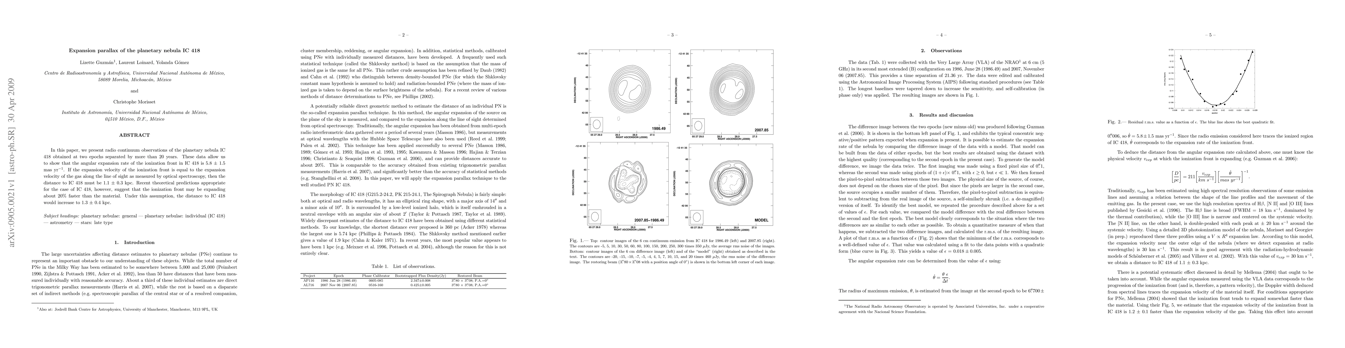 New radio observations of planetary nebula IC 418 reveal an angular expansion rate of 5.8 mas yr$^{-1}$, suggesting a distance of 1.1-1.3 kpc, depending on the assumed velocity ratio between ionization front and gas.