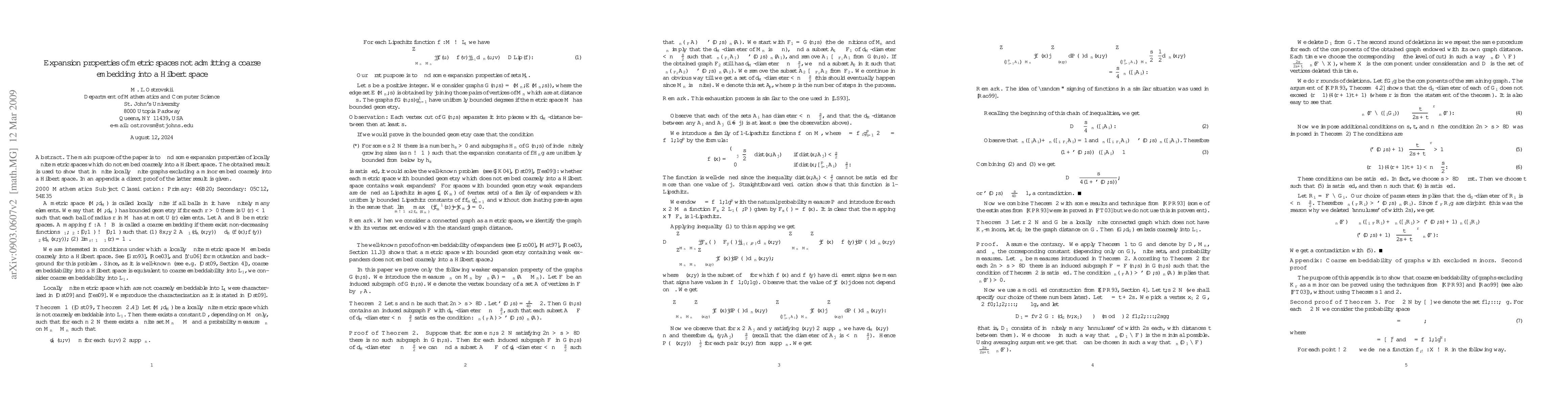 The main purpose of the paper is to find some expansion properties of locally finite metric spaces which do not embed coarsely into a Hilbert space. The obtained result is used to show that infinite locally finite graphs excluding a minor embed coarsely into a Hilbert space. In an appendix a direct proof of the latter result is given.