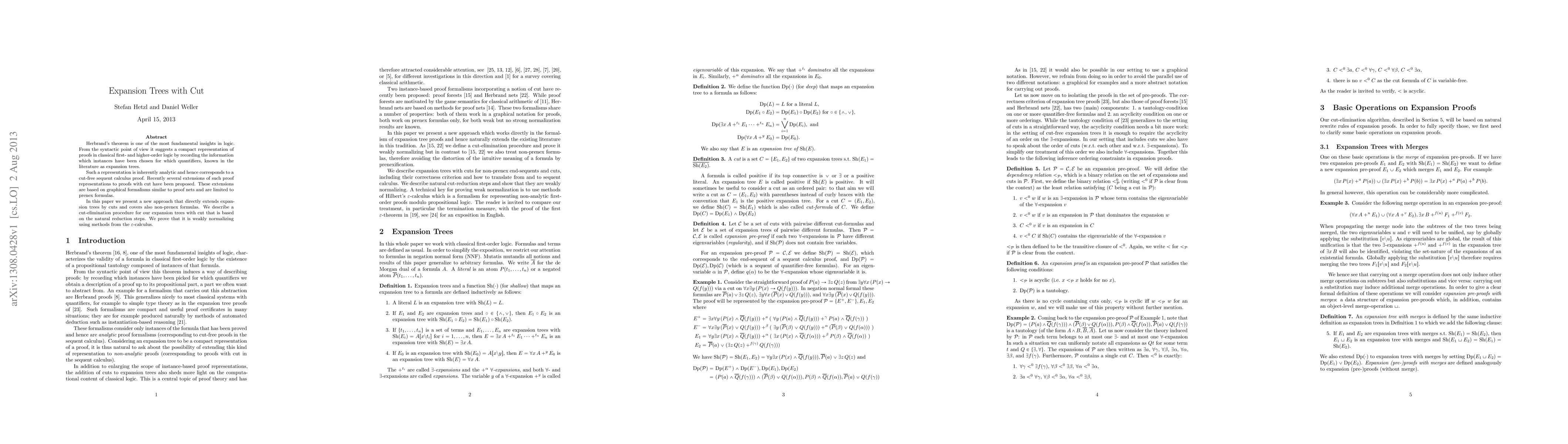 Herbrand's theorem is one of the most fundamental insights in logic. From the syntactic point of view it suggests a compact representation of proofs in classical first- and higher-order logic by recording the information which instances have been chosen for which quantifiers, known in the literature as expansion trees. Such a representation is inherently analytic and hence corresponds to a cut-free sequent calculus proof. Recently several extensions of such proof representations to proofs with cut have been proposed. These extensions are based on graphical formalisms similar to proof nets and are limited to prenex formulas. In this paper we present a new approach that directly extends expansion trees by cuts and covers also non-prenex formulas. We describe a cut-elimination procedure for our expansion trees with cut that is based on the natural reduction steps. We prove that it is weakly normalizing using methods from the epsilon-calculus.
