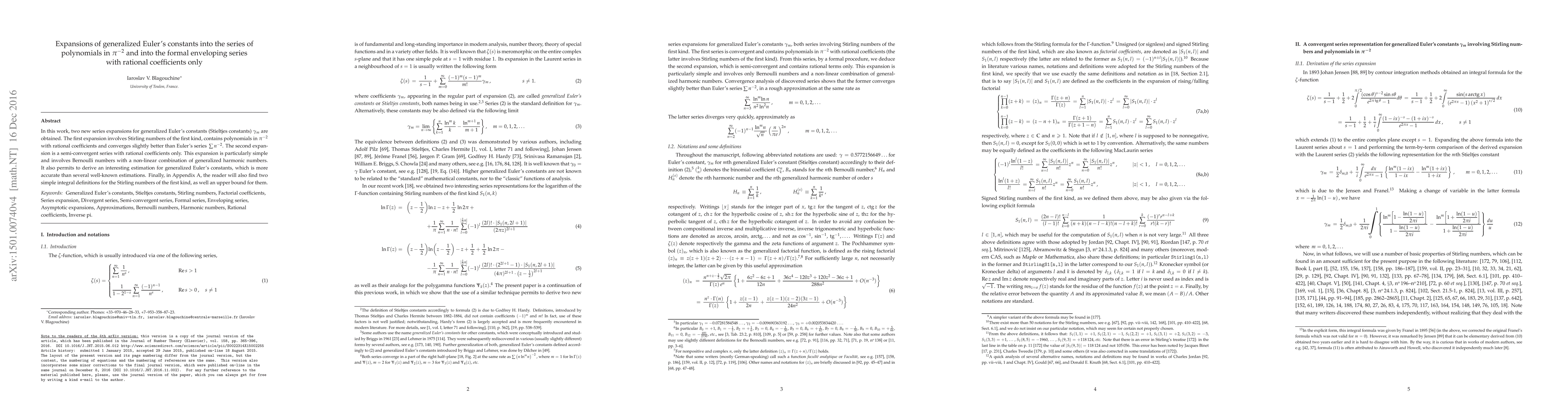 Researchers discovered two new series expansions for generalized Euler's constants, one converging better than Euler's series and the other with simple rational coefficients, offering a more accurate estimation.