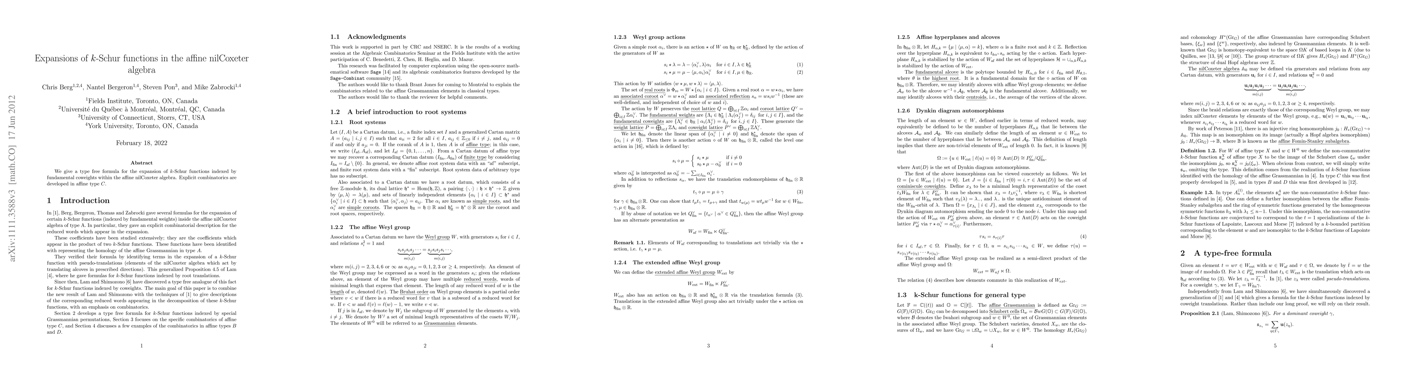 **Summary:** This paper presents a type-independent formula for expanding $k$-Schur functions in terms of fundamental coweights within the affine nilCoxeter algebra, with detailed combinatorial development in affine type C.