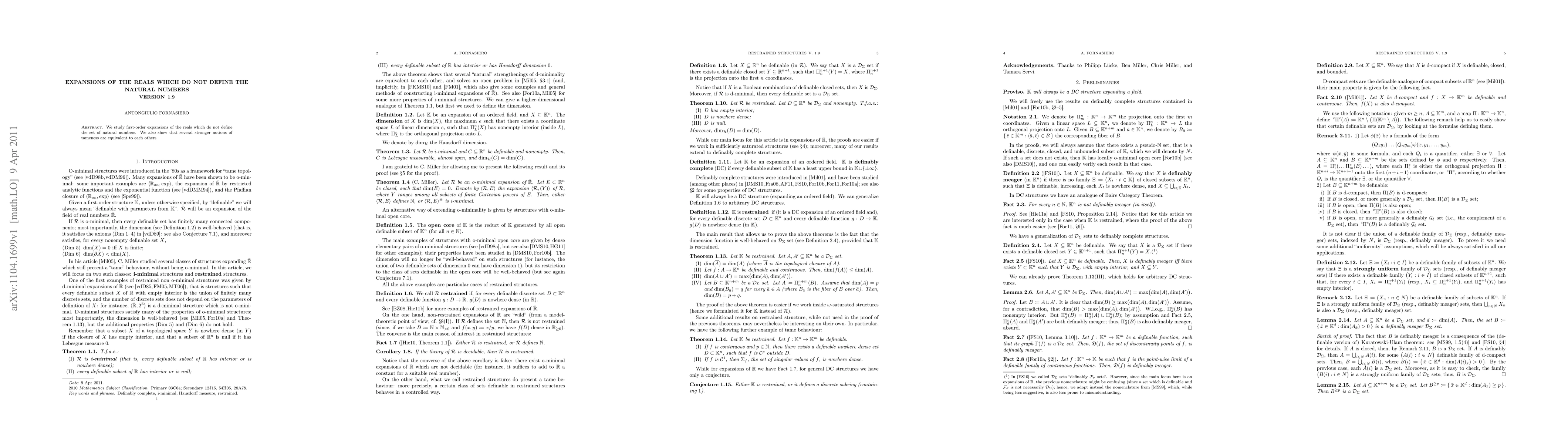 We study first-order expansions of the reals which do not define the set of natural numbers. We also show that several stronger notions of tameness are equivalent to each others.