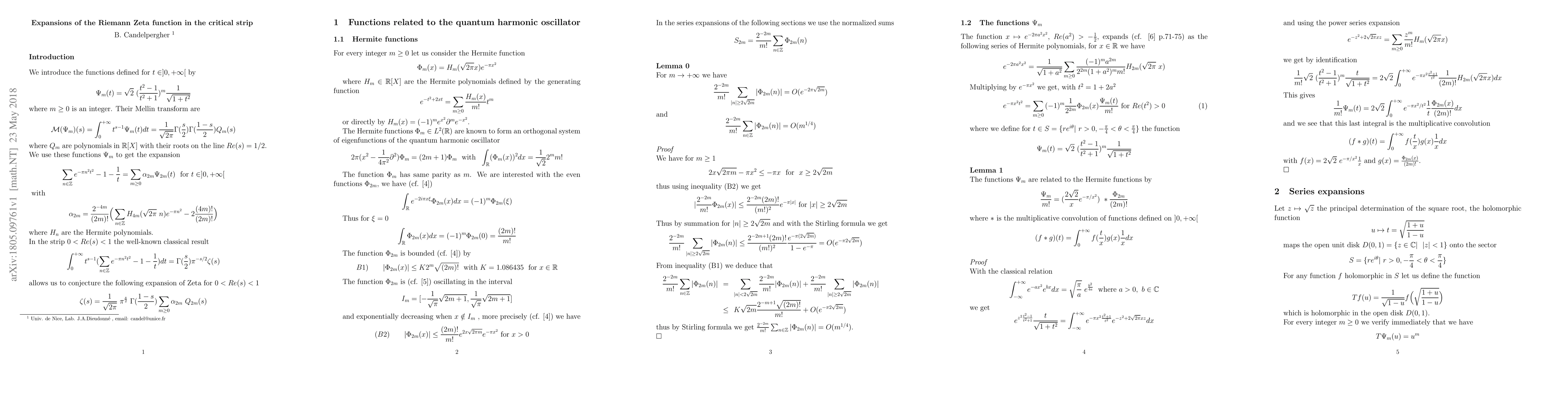 This paper explores conjectural expansions of the Riemann Zeta function in the critical strip using Hermite and Laguerre functions, suggesting a relationship between these special functions and polynomials with zeros on the line Re(s)=1/2. The proposed expansions could potentially offer new insights into the behavior of the Riemann Zeta function.