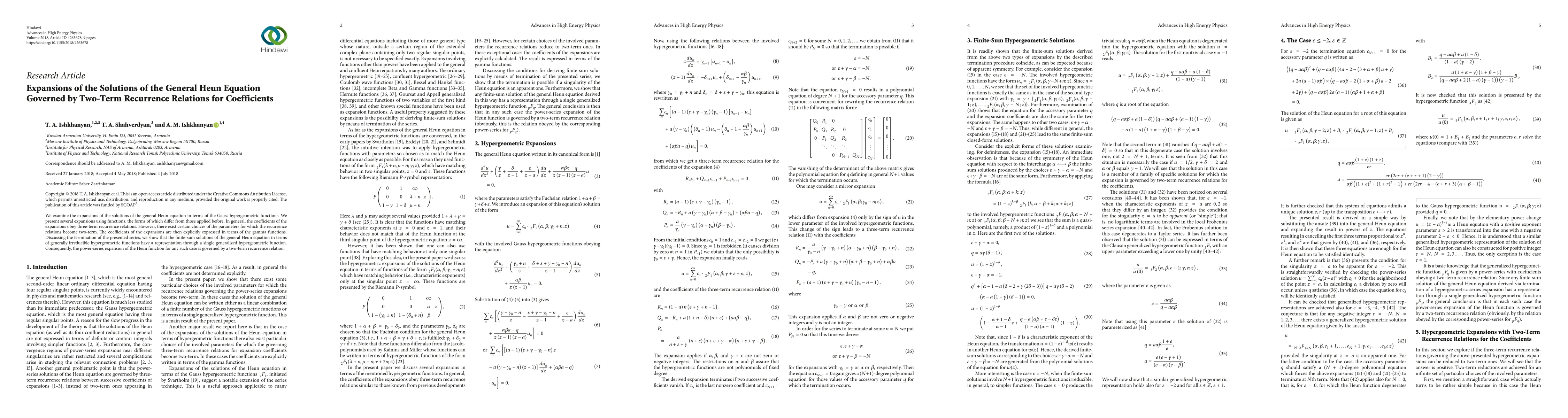 This paper explores expansions of solutions to the general Heun equation using Gauss hypergeometric functions, revealing that under specific parameter choices, the recurrence relations for coefficients simplify to two-term relations expressed in terms of gamma functions. It also demonstrates that finite-sum solutions can be represented through a single generalized hypergeometric function.