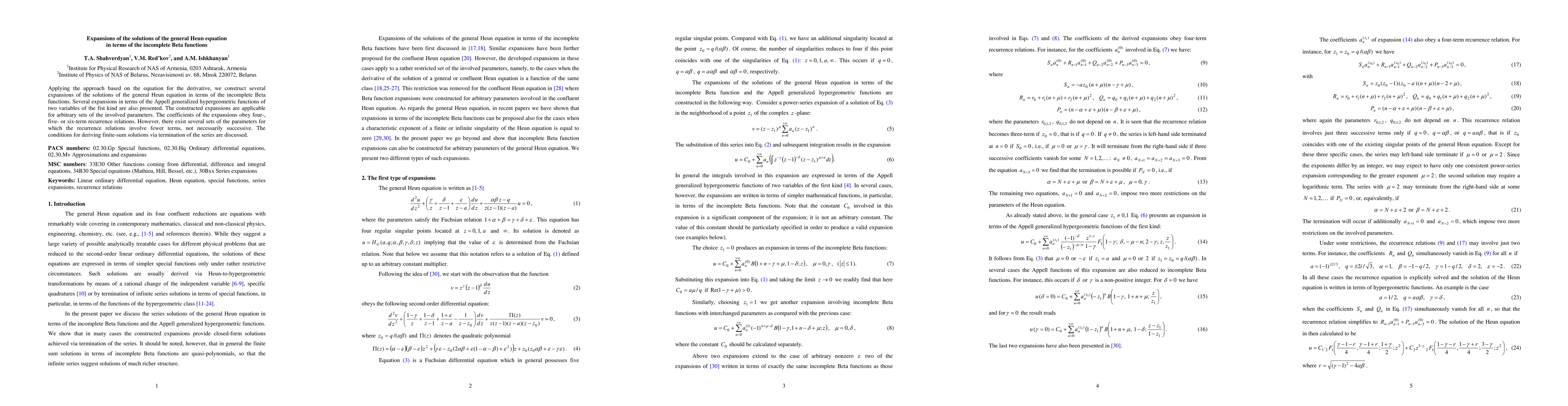 This paper constructs expansions for solutions of the general Heun equation using incomplete Beta functions and Appell hypergeometric functions. These expansions are valid for any parameter set and follow specific recurrence relations, with some conditions allowing for finite-sum solutions.