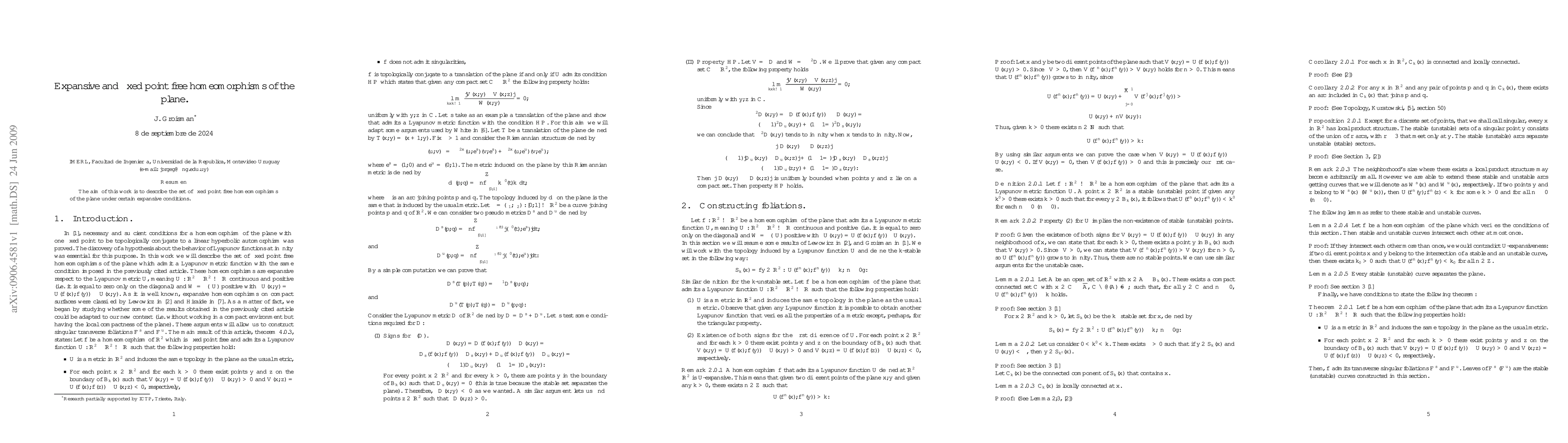 The aim of this work is to describe the set of fixed point free homeomorphisms of the plane under certain expansive conditions.