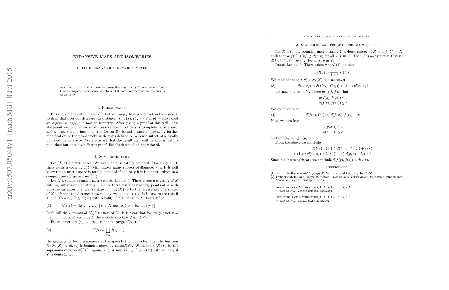 Summary: This paper demonstrates that expansive maps originating from a dense subset of a compact metric space and mapping back to the same space are necessarily isometries, preserving the distance between points.