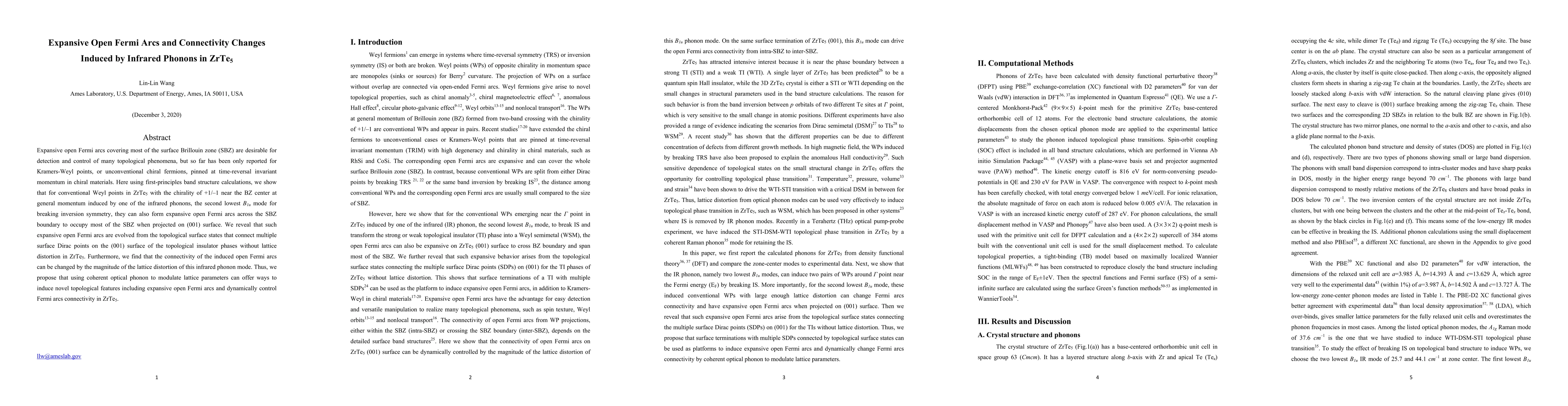 This paper demonstrates that infrared phonons in ZrTe5 can induce expansive open Fermi arcs across the surface Brillouin zone, evolving from topological surface states connecting multiple Dirac points. The connectivity of these arcs can be dynamically altered by the magnitude of lattice distortion from the phonon, suggesting potential for controlling topological features via optical phonon modulation.