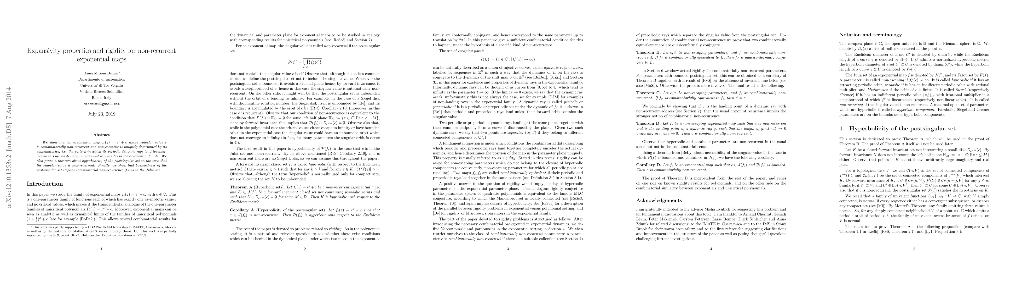This research demonstrates that non-recurrent exponential maps are uniquely determined by their dynamic ray patterns. It achieves this via puzzle and parapuzzle constructions within the exponential family, proving hyperbolicity of the postsingular set for non-recurrent singular values, and establishing that a bounded postsingular set implies combinatorial non-recurrence when the value is in the Julia set.