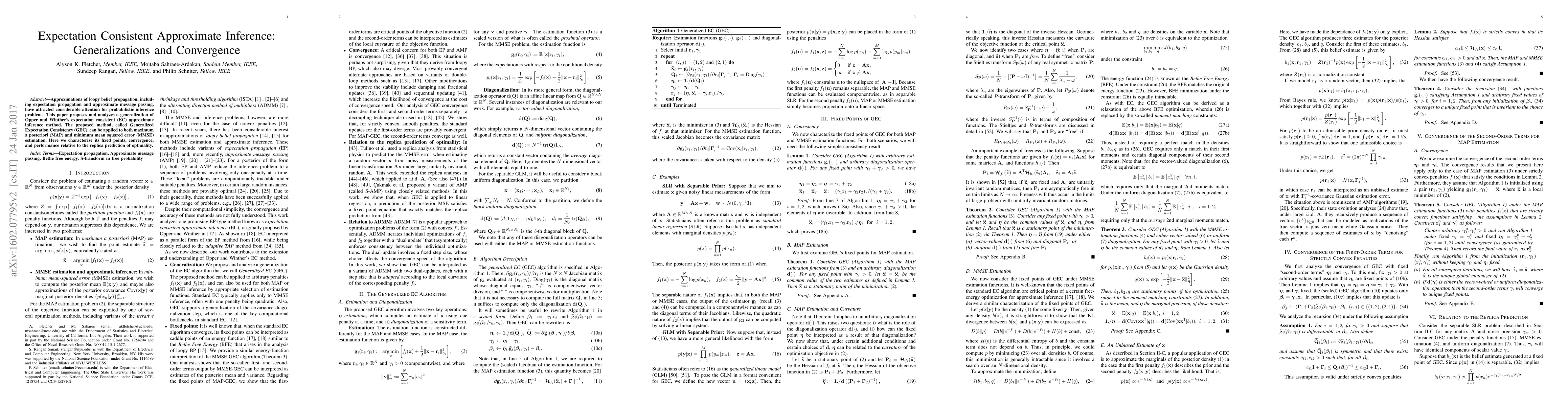 This paper proposes Generalized Expectation Consistency (GEC), a new method for approximate inference that extends expectation consistent (EC) techniques. GEC is shown to converge and perform well for both MAP and MMSE estimation, compared to the replica prediction of optimal performance.