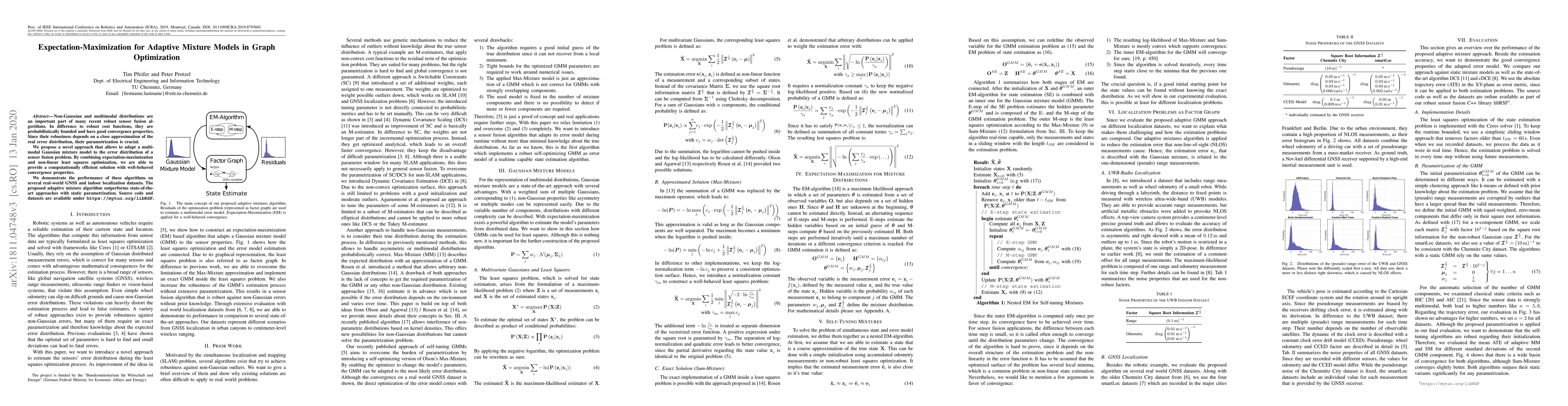 Non-Gaussian and multimodal distributions are an important part of many recent robust sensor fusion algorithms. In difference to robust cost functions, they are probabilistically founded and have good convergence properties. Since their robustness depends on a close approximation of the real error distribution, their parametrization is crucial. We propose a novel approach that allows to adapt a multi-modal Gaussian mixture model to the error distribution of a sensor fusion problem. By combining expectation-maximization and non-linear least squares optimization, we are able to provide a computationally efficient solution with well-behaved convergence properties. We demonstrate the performance of these algorithms on several real-world GNSS and indoor localization datasets. The proposed adaptive mixture algorithm outperforms state-of-the-art approaches with static parametrization. Source code and datasets are available under https://mytuc.org/libRSF.