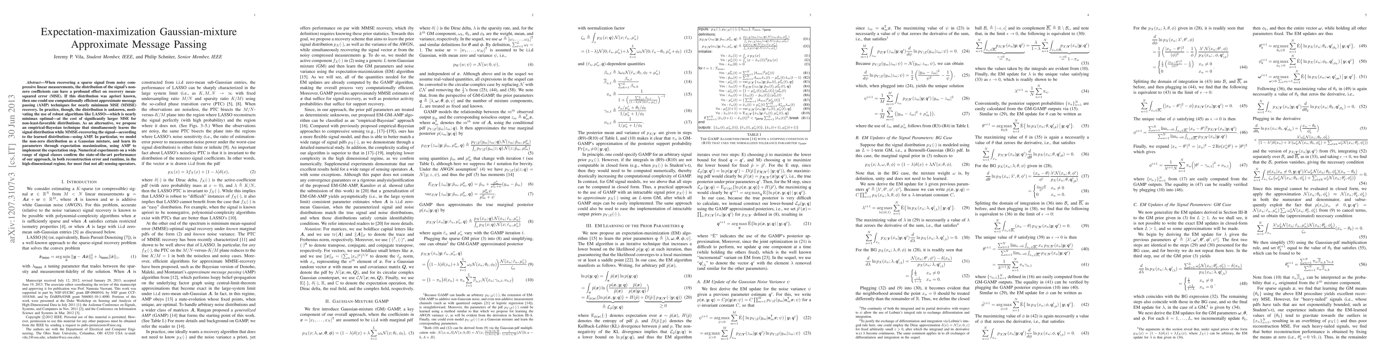 This paper proposes an empirical-Bayesian technique using Expectation-Maximization and Gaussian-Mixture Approximate Message Passing (AMP) to recover sparse signals from noisy measurements. It learns the signal's non-zero coefficient distribution and optimizes recovery mean-squared error, achieving state-of-the-art performance in high-dimensional scenarios.