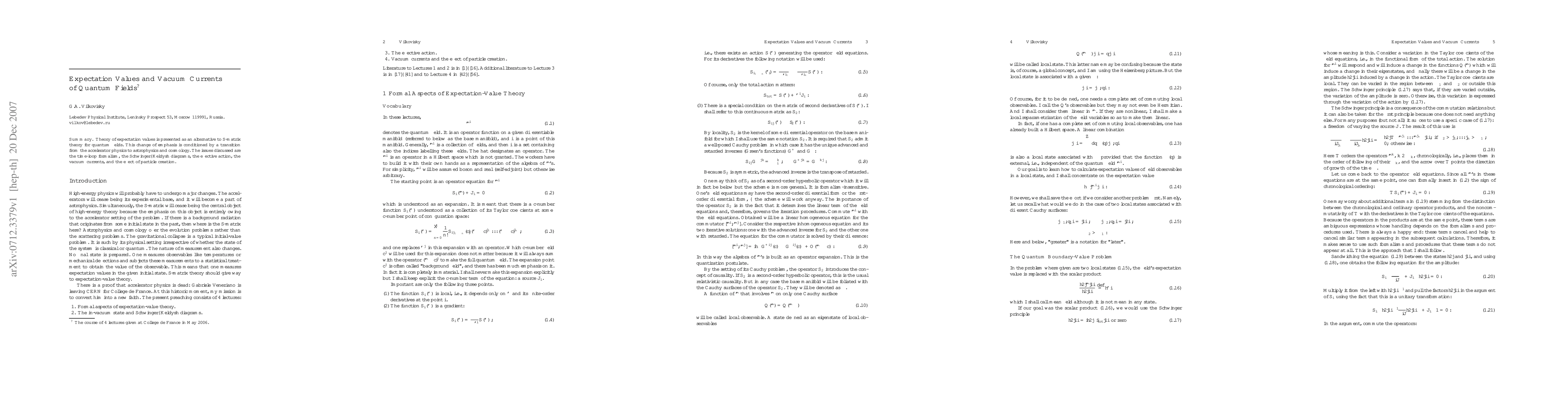Researchers present an alternative theory to S-matrix theory for quantum fields, focusing on expectation values and vacuum currents with implications for astrophysics and cosmology.