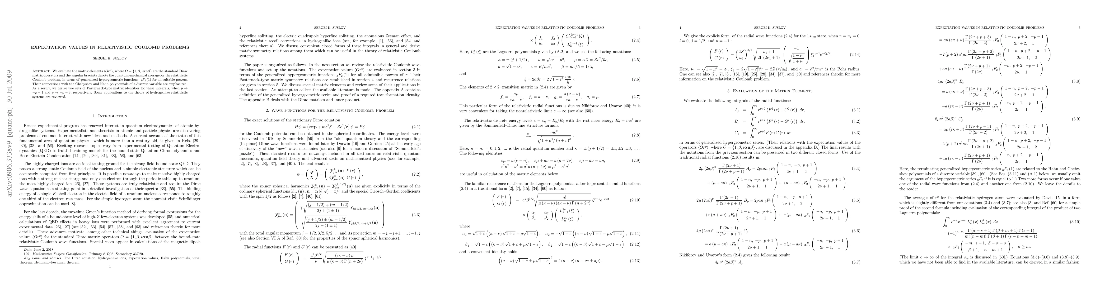 This research derives matrix elements <Or^{p}> for relativistic Coulomb problems using generalized hypergeometric functions_{3}F_{2}. It also reveals connections with Chebyshev and Hahn polynomials, leading to Pasternack-type matrix identities. Applications to relativistic hydrogenlike systems are discussed.