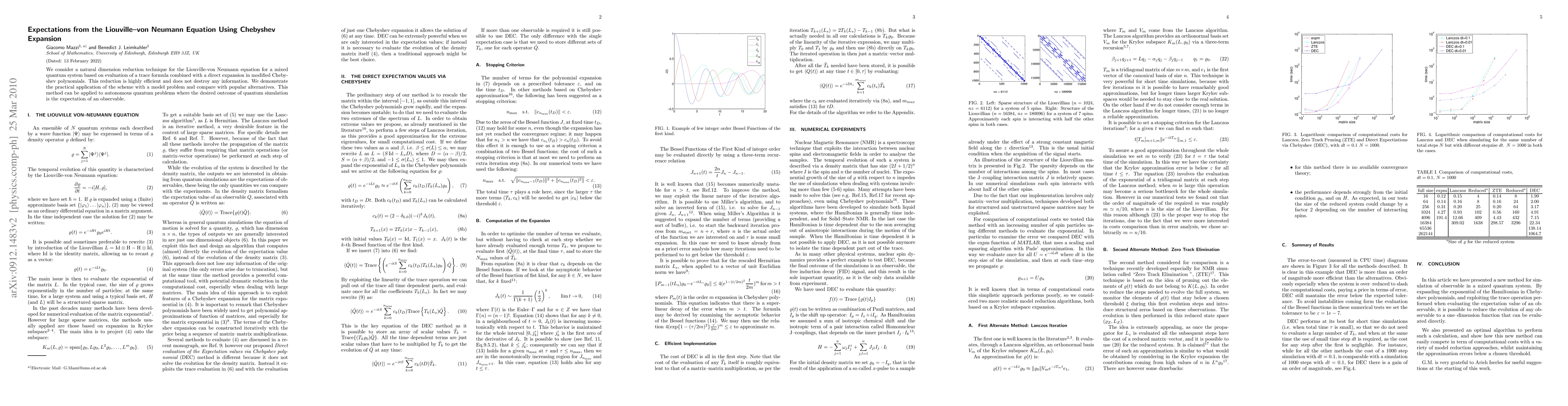 This paper proposes a dimension reduction technique for the Liouville-von Neumann equation using a trace formula and modified Chebyshev polynomial expansion, which efficiently preserves information. The method is demonstrated and compared to alternatives for simulating quantum systems to compute observable expectations.