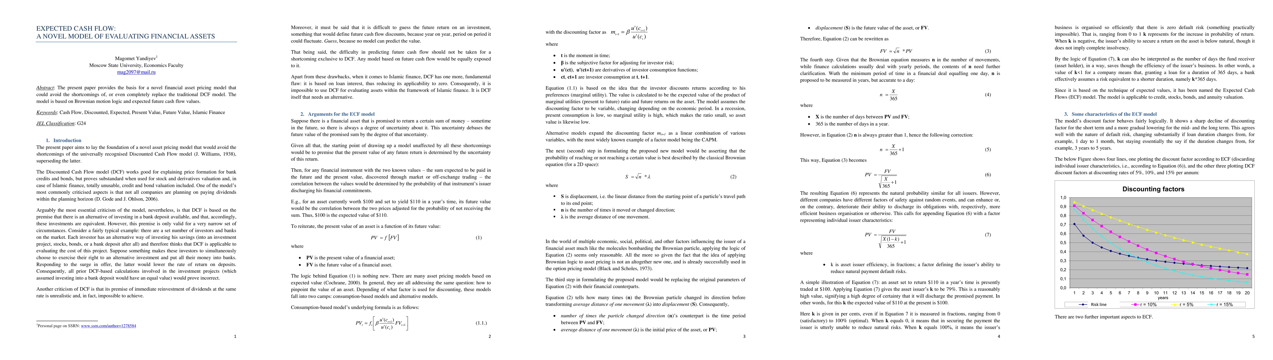 The present paper provides the basis for a novel financial asset pricing model that could avoid the shortcomings of, or even completely replace the traditional DCF model. The model is based on Brownian motion logic and expected future cash flow values. It can be very useful for Islamic Finance.