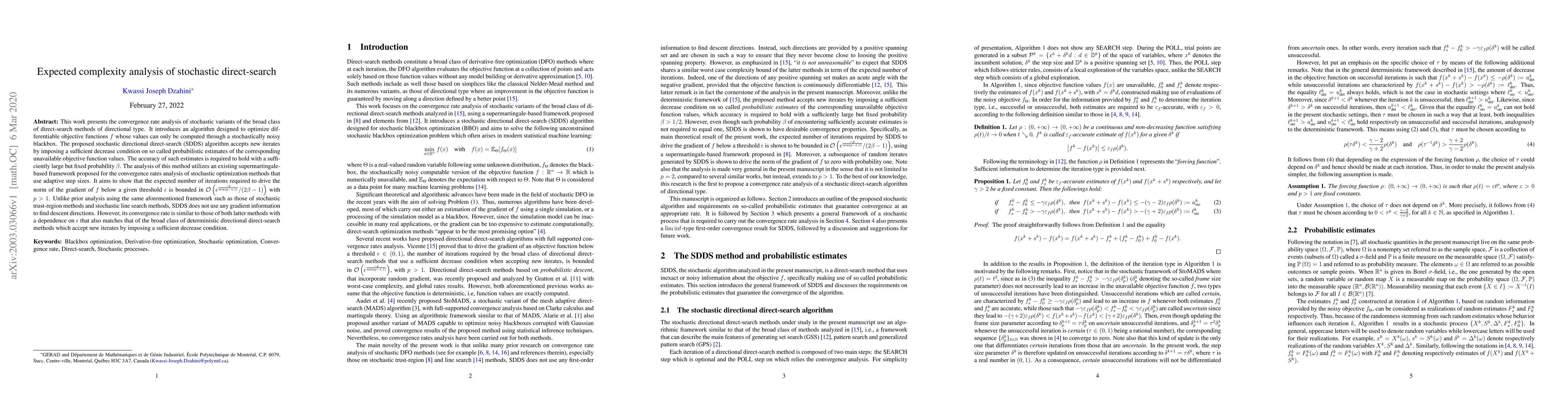 A new algorithm called SDDS optimizes functions with noisy blackbox evaluations, achieving a convergence rate similar to deterministic direct-search methods with a dependence on the threshold value epsilon.