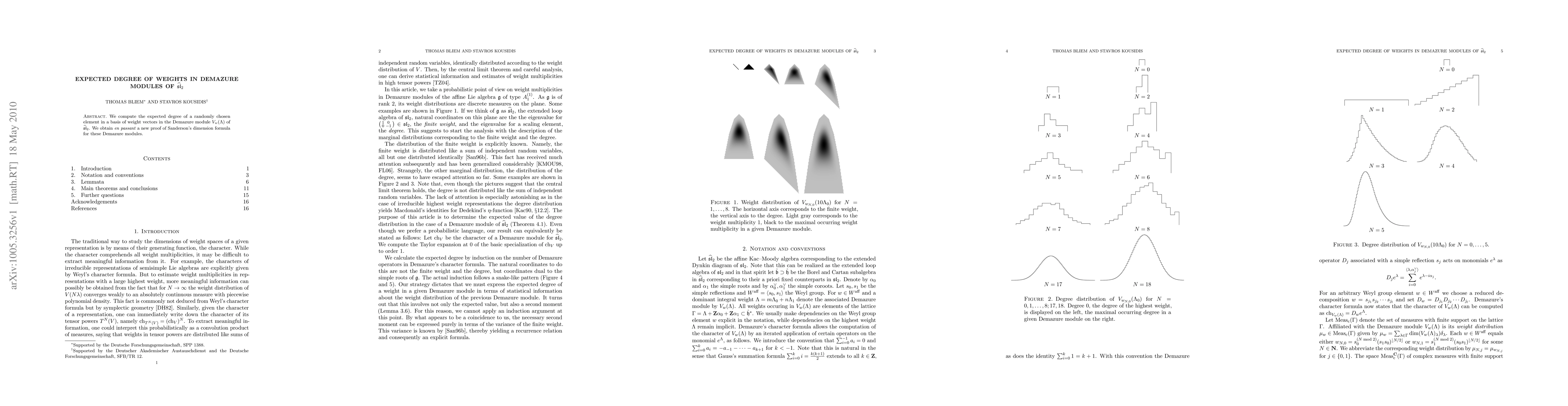 We compute the expected degree of a randomly chosen element in a basis of weight vectors in the Demazure module $V_w(\Lambda)$ of $\hat{sl}_2$. We obtain en passant a new proof of Sanderson's dimension formula for these Demazure modules.