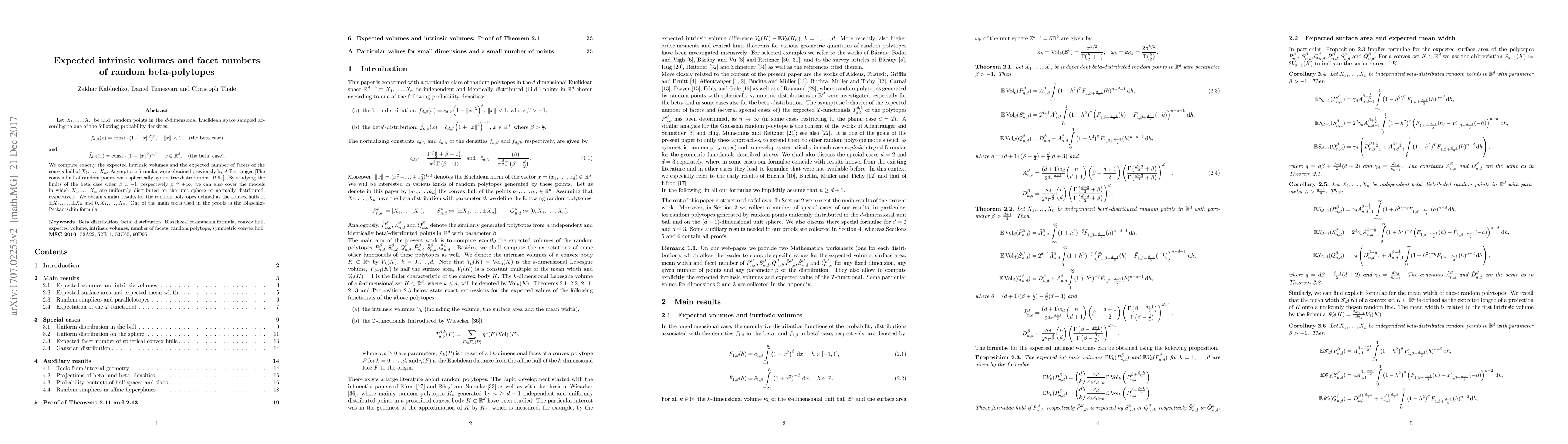 This paper calculates the exact expected intrinsic volumes and facet numbers for random beta-polytopes formed by convex hulls of points sampled from specific densities. It extends previous asymptotic results to cover uniform spherical and normal distributions by studying limits of the beta case.
