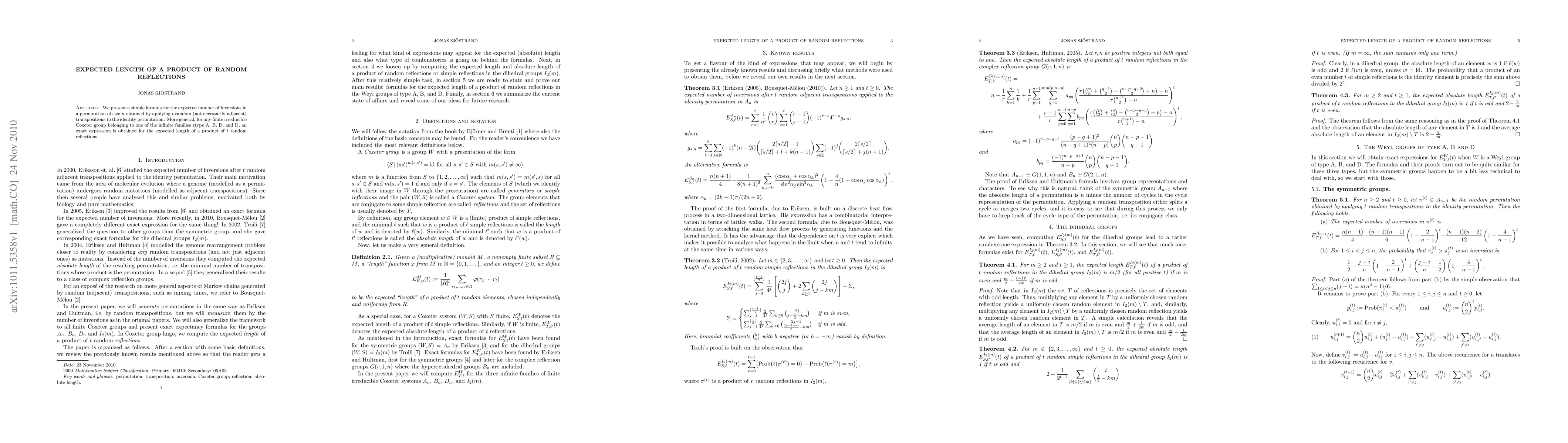 Researchers found a simple formula for predicting how many inversions occur in a randomly shuffled list after applying multiple random swaps. They also developed an expression to calculate the expected length of a product of random reflections in finite Coxeter groups.