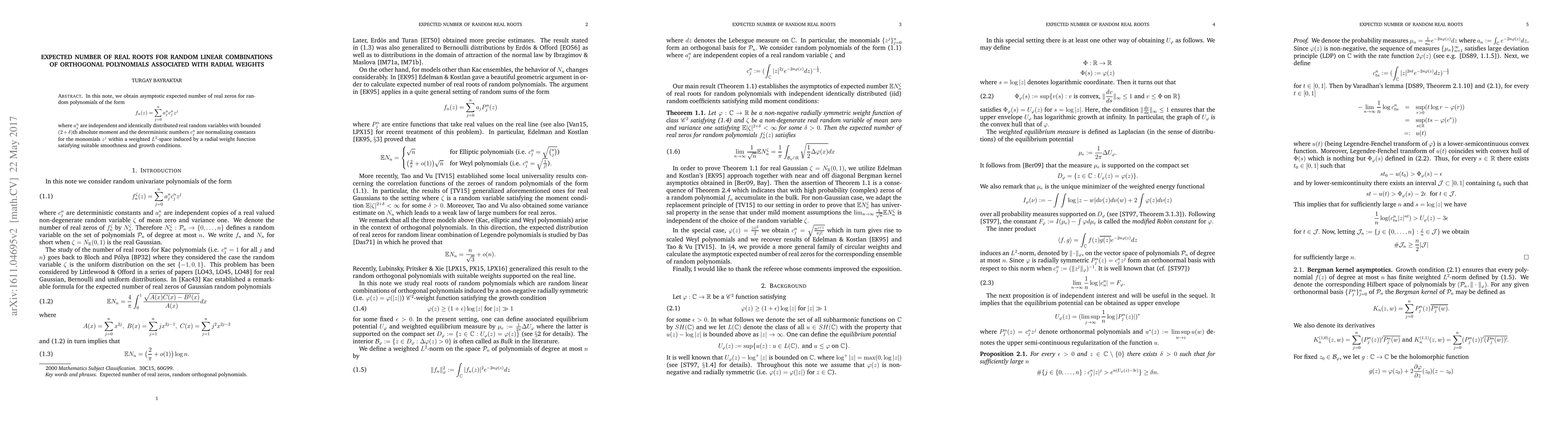 This research paper studies the expected number of real roots in random linear combinations of orthogonal polynomials associated with radial weights. It provides an asymptotic estimate for this expectation under certain conditions on the random variables and weight function.